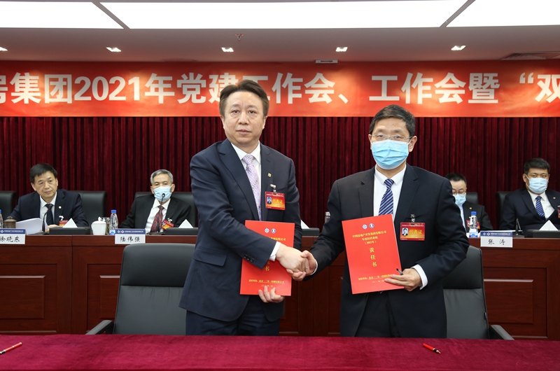 会议期间,公司与各二级企业、各项目公司代表签订了2021年度党建目标任务责任书、职业健康安全环保责任书、经营业绩(目标)责任书。